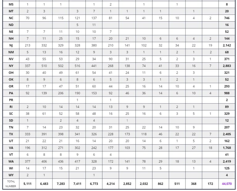 4) Number of participants in each state in 2023
